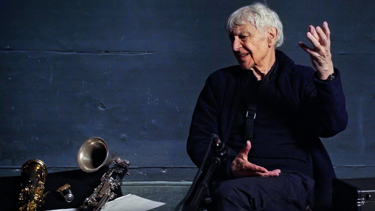 Le film : Dans un décor débarrassé de tout artifice de scène, le compositeur et interprète multi-instrumentiste Michel Portal, invente, écoute, écrit et joue de sa seule langue : la musique.